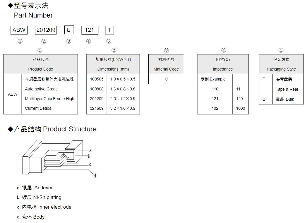 風(fēng)華高科車規(guī)疊層片式鐵氧體大電流磁珠命名規(guī)則: