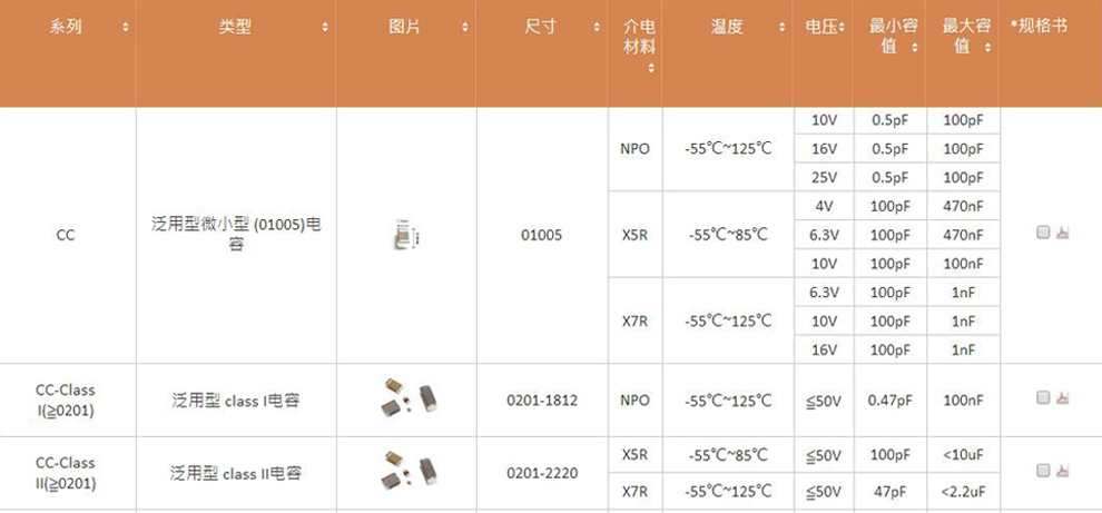 0201,0402,0603,0805,1206,容量范圍一般在0.5pF~1uF。