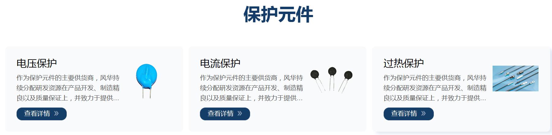 風華保護元器件種類有:電壓保護、電流保護、過熱保護及其他產品。
