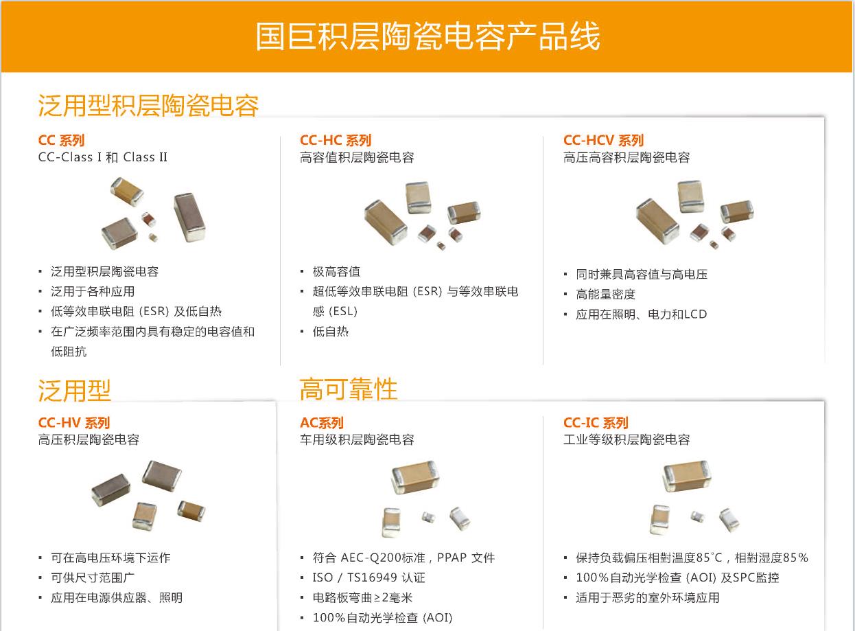 國巨貼片電容通用型陶瓷電容,車用電容,高頻電容,軟端電極電容,微型化電容,排容,低感值電容