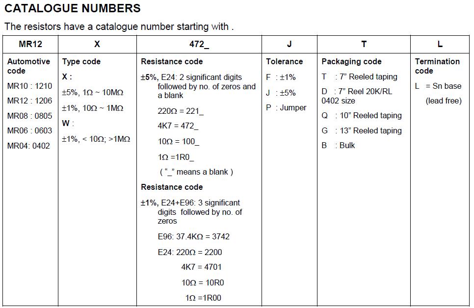 厚聲車規(guī)電阻命名規(guī)則對照表